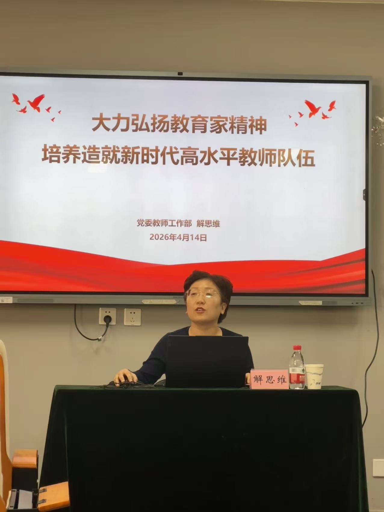 培训从“深入学习领会习近平总书记关于教育的重要论述”“准确把握教师思想政治和师德师风建设成效问题”“努力培养造就新时代高水平教师队伍”三个方面展开,系统梳理了习近平总书记关于教师队伍的重要论述,带领教师集体学习了习近平总书记提出的教育家精神,分析了教师思想政治和师德师风建设工作的新形势和新要求,详细解读了我校教师思想政治和师德师风建设制度文件。